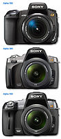 Porovnávat obě novinky Alpha A500 a A550 nebudeme, jak už jsem řekl těla i ovládání je identické. Jediné v čem se liší je použitý snímač. U Alphy A500 je snímacím prvkem snímač Exmor™ CMOS s 12MPix ( 4272×2848pixel) a u Alphy A550 je použit snímač Exmor™ CMOS s 14MPix (4592×3056pixel). Mne více zajímal 14Mpix čip, protože předchozí Alphy se snímačem s tímto rozlišením (Alpha A350 a A380) mi prošly rukama a tak jsem byl zvědavý, co nového vlastně tato DSLR nabízí. A myslím si, že má co nabídnout. Po několika dnech jsem alespoň já nabyl takového dojmu. Koukněme se tedy na ní trochu blíže. Jen ještě malá poznámka. V úvodu jsem se zmínil ještě o dvou odlišnostech ve funkcích u A550 oproti A500. A500 má nižší rychlost snímání v sérii a to 5sn./sec. A550 nabízí až 7sn./sec. A druhou odlišností je rozlišení LCD, kdy A500 nabízí standardní 230kpix, kdežto A550 skvělých 920kpix. A ten rozdíl je opravdu znát. Již první pohled na A550 ukazuje výraznou odlišnost od nedávné A380 a svojí konstrukcí, tvarem a designem navazuje spíše na Alphu A350. Ostatně podívejte se na srovnávací fotografie.