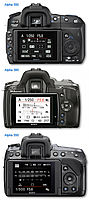 Zmínil bych se snad pouze o dvou nových tlačítkách na horní straně. Jedním z nich je D-Range, které nabídne nastavení funkce DRO – optimalizace dynamického rozsahu a nové funkce HDR – High Dynamic Range – Vysoký dynamický rozsah (více o této funkci dále v článku). Druhým tlačítkem je funkce MF Check LV – Manual Focus Check Live View, což jednoduše řečeno je možnost zvětšení živého náhledu až 14× pro lepší manuální zaostření. Velkého zlepšení dostálo LCD a to nejen co se týká kvality zobrazení, ale hlavně konstrukce. U A350 jsem toto dost kritizoval:" … budu poměrně kritický, protože mi připadá konstrukčně nedotažená. Pro focení nad hlavou je vyklopení 40° celkem málo, zde by se více hodila možnost vyklopení až o 90° směrem dolů. I samotná konstrukce výklopného LCD trochu překvapí. Je kvalitní, ale přenos elektroniky přes tenký a široký kabel, který není v délce skoro 1,5cm vůbec chráněný před případným poškozením zvenčí nepůsobí moc dobře…" U A550 již toto neplatí. Sklopení LCD o 90° není problém, LCD je zasazeno do pevnějšího a masivnějšího rámu a přibyla i ochrana kabelu.