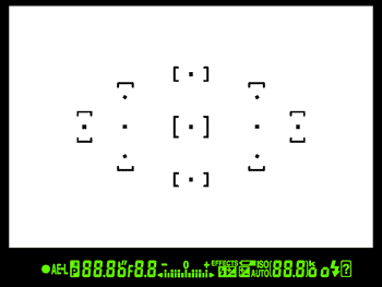 Drobné změny doznal i pentamirror optický hledáček. Pokrytí 95% scény se nezměnilo, ale zvětšení stouplo z 0,8× na 0,85×. Informace zobrazené v hledáčku jsou stejné jako u většiny DSLR Nikon základních řad. Pevně zobrazené červeně zvýrazněné ostřicí body, údaje o expozici včetně ISO a řada dalších údajů včetně toho, zda máte zapnutý nějaký umělecký efekt.