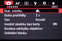 Co se samotného ovládání fotoaparátu týče, většina běžných fotografických nastavení je na tlačítkách a při focení tak nemusíte dát oko od hledáčku. Co nenajdete na tlačítkách, najdete na displeji v rychlém nastavení tlačítkem Q, případně v menu fotoaparátu, které u 7D Mk. II nabývá obřích rozměrů. Nastavit si totiž můžete téměř vše. Od chování AF až po volbu, které ovládací prvky zamkne přepínač LOCK. Nejlepší představu o možnostech nastavení získáte pohledem na obrázky z menu. Právě díky velikosti menu jsem snad poprvé využil možnost vytáhnou některé položky do menu vlastního.