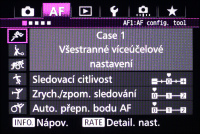 - 65 křížových AF bodů (středový bod dvoukřížový při f/2,8, křížový při f/8 do –3EV)