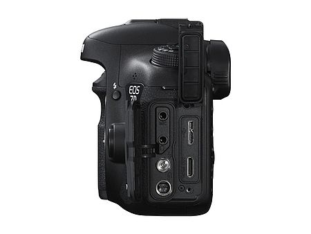Na levé straně fotoaparátu se pod dvěma gumovými krytkami nachází konektory. Je to celkem běžná řádka konektorů: vstup pro externí mikrofon, výstup na sluchátka, synchro kontakt pro blesky, miniHDMI, N3 konektor na kabelovou spoušť a USB. Právě USB ale stojí za pozornost, protože se jedná o USB 3.0 konektor ve formátu microUSB. Tedy jiný konektor, než byl u Canon DSLR zvykem. Samozřejmě je zpětně kompatibilní s USB 2.0 microUSB a nepochybnou výhodou je, že pro připojení fotoaparátu k PC můžete nyní využít stejný kabel, jako u většiny mobilních telefonů.