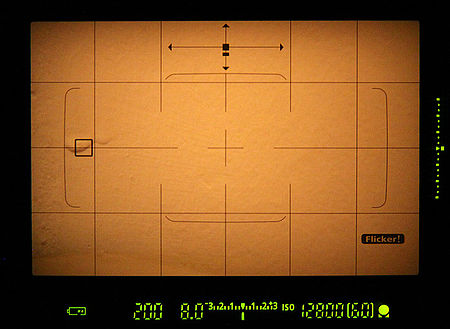 Hledáček fotoaparátu s optickým hranolem má specifikace, které potěší. Při pokrytí 100% obrazové plochy nabídne zvětšení 1×. Není to fullframe, ale proti desítkové, neřku-li stovkové řadě Canon, je to viditelné zlepšení. V hledáčku je matnice EH-A, na které se pomocí LCD zobrazují ostřicí body, ale i údaje o nastavení, pokud například měníte pohon AF, WB a další parametry. Je to příjemný doplněk k běžnému zobrazení nastavení a expozice pod hledáčkem, díky kterému opravdu nemusíte dát oko od hledáčku. Matnice je navíc výměnná (kde jsou ty doby, kdy byla výměnná i u modelů desítkové řady) a k dispozici je EH-S pro manuální ostření.
