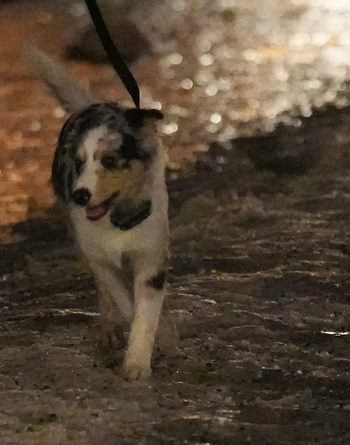 V režimu autofokusu jsem nastavil prioritu zaostření obličeje. Fotoaparát dokázal v noci velmi přesně zaostřit malého psíka – výřez.