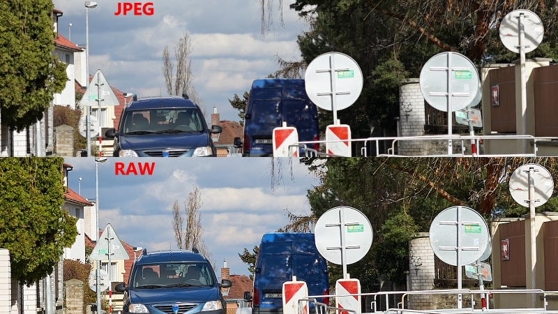 Jako u každého přístroje dostanete z RAWu trochu víc detailů (díky silnějšímu doostření zde patrné) ale na 12MPx rozlišení není rozdíl tak patrný.