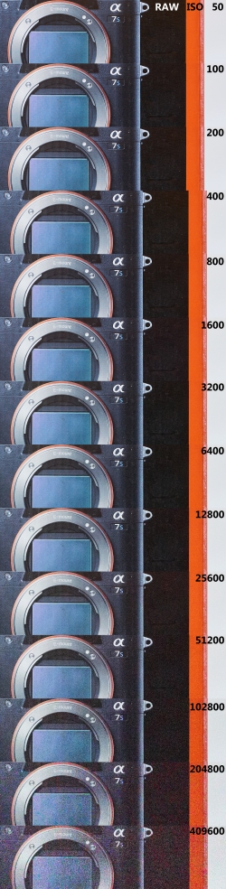 Shrnutí: I když je senzor stejný, jako v a7S Mark I, stále patří v množství šumu ke špičce. Na „rozumných“ citlivostech cca do 6400 není jeho náskok tak patrný, na vyšších se ale projeví.