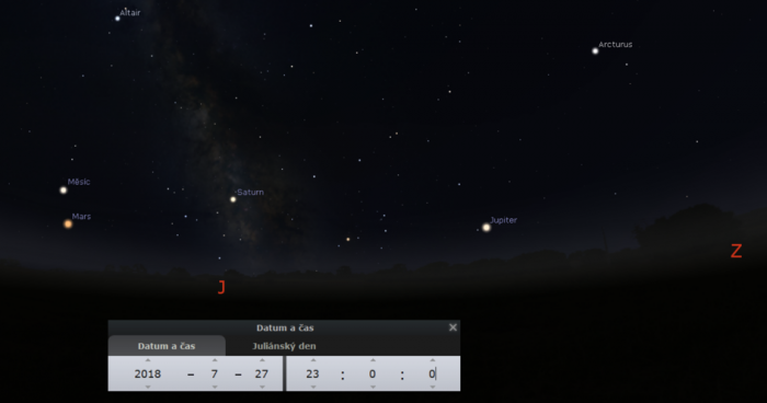 Na obloze dále uvidíte pod Měsícem planety, načervenalý Mars, směrem na jih Saturn a jihozápadním směrem Jupiter.