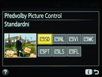 Menu je tradiční, přehledné a v Režimu průvodce (volba na hlavním voliči) vás graficky provede nastavením bez potřeby probírat se klasickým nastavením.