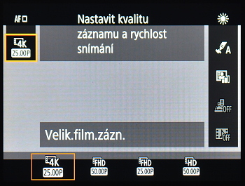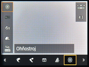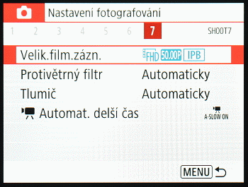 Pokud stisknete tlačítko natáčení videa při současném nastavení nějakého fotografického režimu na hlavním voliči, pak se natáčí video, které danému nastavení odpovídá (typicky u scénických režimů).