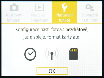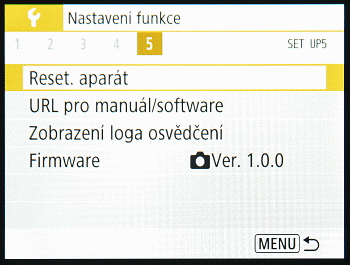 Menu je relativně jednoduché a je velmi přehledné. Nejpodstatnější nastavení najdete při focení pod tlačítkem Set uprostřed křížového voliče a „generální“ menu najdete pod tlačítkem Menu. Mezi již klasické možnosti nastavení patří například automatické ostření na tvář, které je hned v první položce.