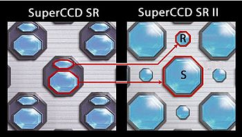 Čip je jedna z nejvydařenějších částí FinePix S3 PRO. Oproti předchozímu typu SR má SR II zvětšenou plochu hlavních snímacích pixelů označených „S“. Pomocné pixely „R“ jsou umístěny odděleně, což je výhodné pro nasazení mikročoček, které soustřeďují světlo na buňky. Snímač SuperCCD SR II má rozměry 23×15,5 mm. 6.17 miliónů buněk typu S vytváří základ obrazu. 6,17 miliónů R buněk menších rozměrů slouží především k rozšíření dynamického rozsahu senzoru. To je výhodné všude tam, kde jsou velké kontrasty světla a hrozí nebezpečí ztráty kresby ve světlech a stínech. Malý dynamický rozsah čidel je považován za jednu z hlavních slabin digitálních fotoaparátů. Čip má tedy 12,34 miliónů oddělených a samostatně adresovaných buněk. Ve skutečnosti stoprocentně efektivních vytvářejících základ obrazu je 6,17 miliónu.