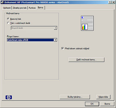 Zde se projevuje rozdíl mezi oběma modely, tiskárna B9180 je totiž podporovanější výrobci tiskových médií a ti poskytují vlastní ICC profily (mluvíme-li o materiálech, které nevyrábí HP).