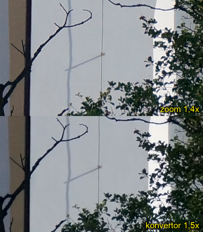 aktuální ohniskovou vzdálenost o 1,4× a 2×. Snímky jsou tvořeny jen