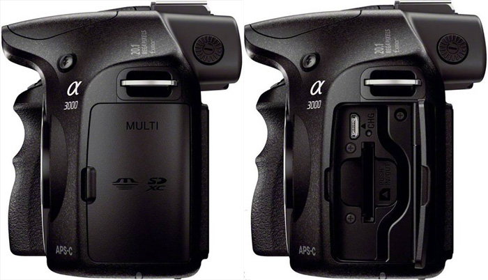 Tělo je, co se týče tvaru, úplně nové. Nic, co by Sony dodnes vyrobila (no možná je to škoda, mohli využít těl A33, nebo A55). A je patrné, že se jedná opravdu o ekonomický fotoaparát. Je kompletně celoplastový, dokonce i očnici chybí gumový lem. Na druhou stranu je tělo navrženo ergonomicky. Tak, aby se i přes svoji malou velikost dobře drželo. Proto je třeba A3000 brát jako přístroj pro skupinu uživatelů, kteří by možná chtěli přejít na vyšší typ fotoaparátu, ale neví, zda jim klasická digitální „zrcadlovka“ bude vyhovovat.