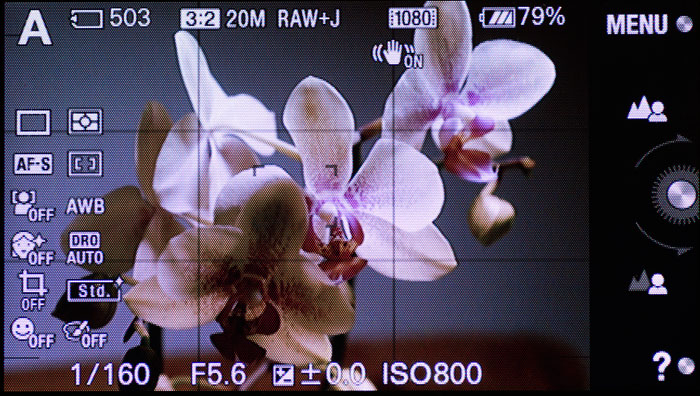 Druhou věcí, kterou bych jinak dobře vypadajícímu fotoaparátu vytknul, je pohled do hledáčku. Velmi zarazí jeho malá velikost a ne zrovna jemné rozlišení – pouhých 200kPix. Takovéto elektronické hledáčky snad byly standardní ve fotoaparátech před 5 a více lety, ale dnes je to opravdu velmi málo. Upřímně, častokrát jsem raději komponoval přes zadní LCD, i když tvar fotoaparátu se nabízí jako zrcadlovka, kde má být komponování výhradní věcí právě hledáčku. Lze snad jen doufat, že u případných A5000 nebo A7000 bude hledáček větší. Také chybí automatické přepínání mezi hledáčkem a LCD. Hledáček samozřejmě zobrazuje 100% pole a je možná dioptrická korekce –4 až +3,5. A stejně tak jako u LCD je možné nastavovat jeho jas. Abych však jenom nekritizoval, minimálně jedna funkce LCD mne příjemně překvapila a nemohu si vzpomenout, zda jí již Sony někdy dříve použilo. Je jí okamžité zobrazování hloubky ostrosti v reálném čase, není tedy nutné mít na to speciální tlačítko.
