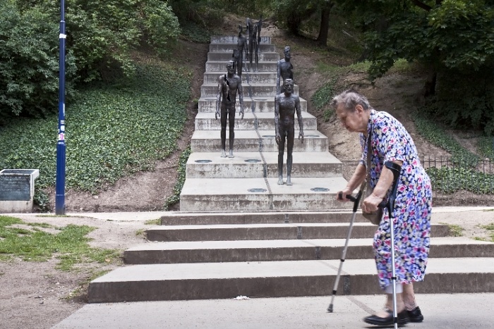 Poněkud černější druh humoru využívá tento příspěvek. Někomu možná tento typ humoru nesedí, ale to je otázkou kultury a vkusu. Fotografie využívá tvarové podobnosti těla u póz soch a invalidní paní o berlích. Škoda technických nedostatků – paní měla být ostrá, takže měl být zvolen o něco kratší expoziční čas. Také v kompozici jsou chyby. Sloup a všechno co je za ním vlevo mělo být oříznuto, protože jako rušivý prvek nedává dostatečně vyniknout hlavnímu tématu fotografie.