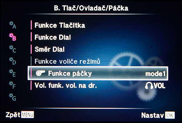 Podobně jako u E-M1 se tlačítkem MENU dostanete do Nabídky nastavení