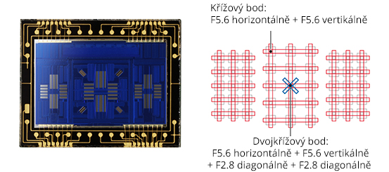 AF modul a schéma jeho ostřících bodů - převzato a přeloženo ze stránek Canon Japan.