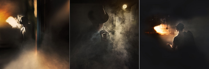 Fotky vznikali v mojom domácom ateliéri, kde používam na svietenie záblesky, konkrétne fotografie z tejto sérii sú fotené cez “komínik” zvačša jedným svetlom a dym vytváram pomocou dymostroju. Všetko ostatné je dotvárané pomocou Photoshopu, fotky skladám/dotváram prevažne z dvoch až troch záberov. Snažím sa aby mali fotky akúsi filmovú atmosféru.