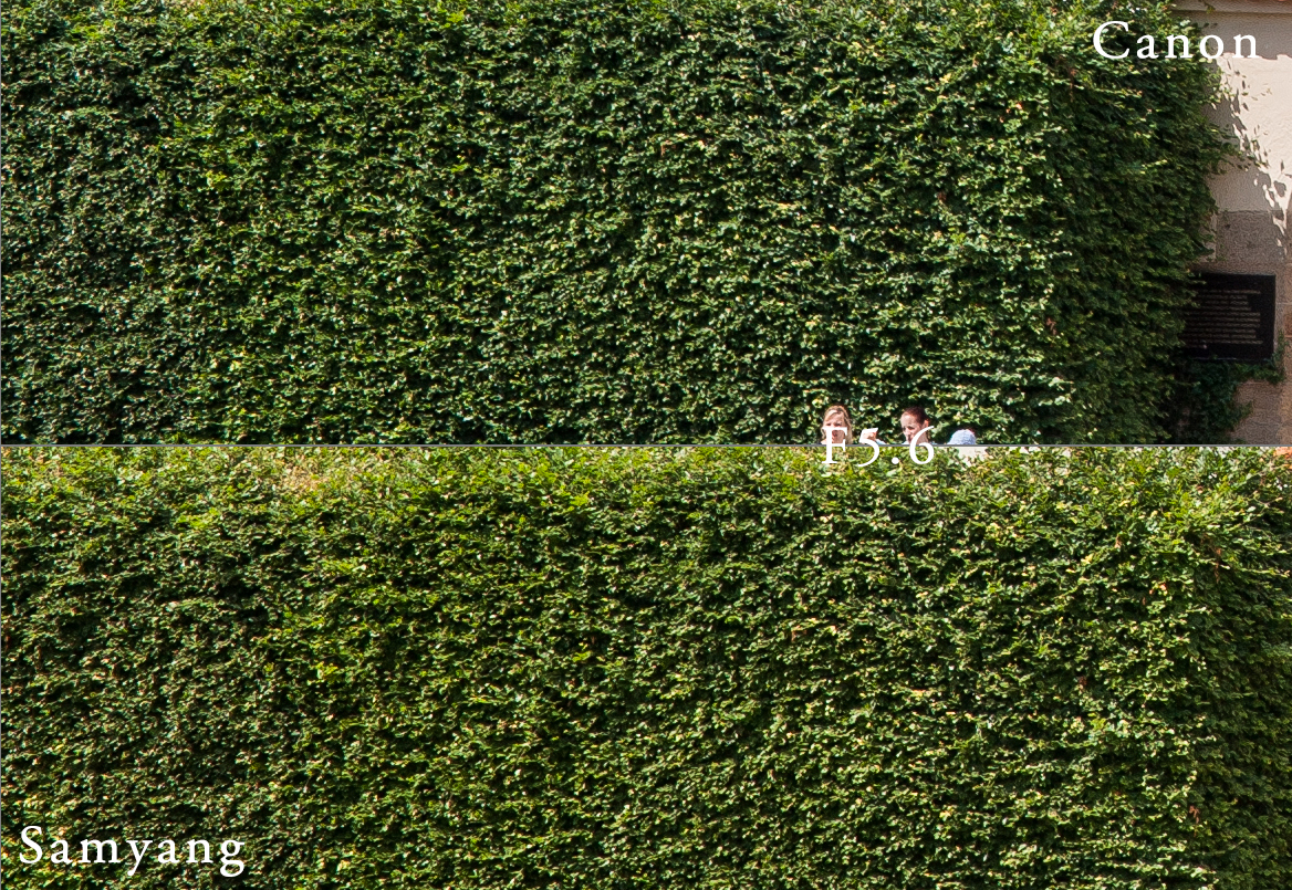 Závěr srovnání – Samyang XP 85mm F1.2 je nejen plně opticky srovnatelný s dražším Canonem; v něčem ho dokonce překonává. Při F1.2 a F2.0 podávají oba objektivy dobrý výkon, ale Samyang je ve středu i rohu snímku o něco ostřejší. I barevných lemů je méně. Střed se dorovná při F2.8, rohové oblasti kolem F4.0. Od této clony bych si mezi oběma objektivy nevybral… tedy vybral - asi si rozumíme:-)