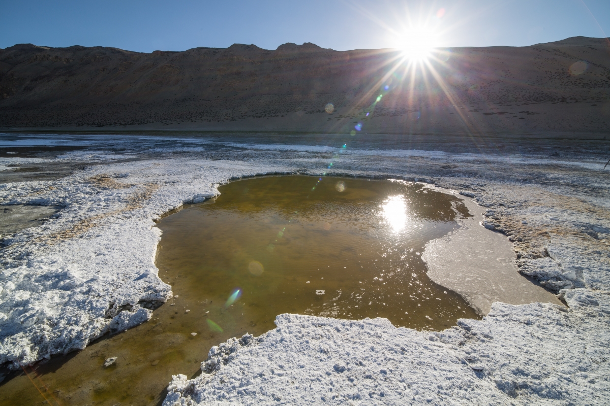 Optická konstrukce je v případě Samyangu XP 14mm docela složitá a přední člen velký a výrazně vypouklý. Spolu s nutností spíše malé sluneční clony (aby nelezla do záběru) je to recept na „prasátka“. Jak vypadá snímek se sluncem v záběru ze šikma (nejhorší situace) vidíte níže: