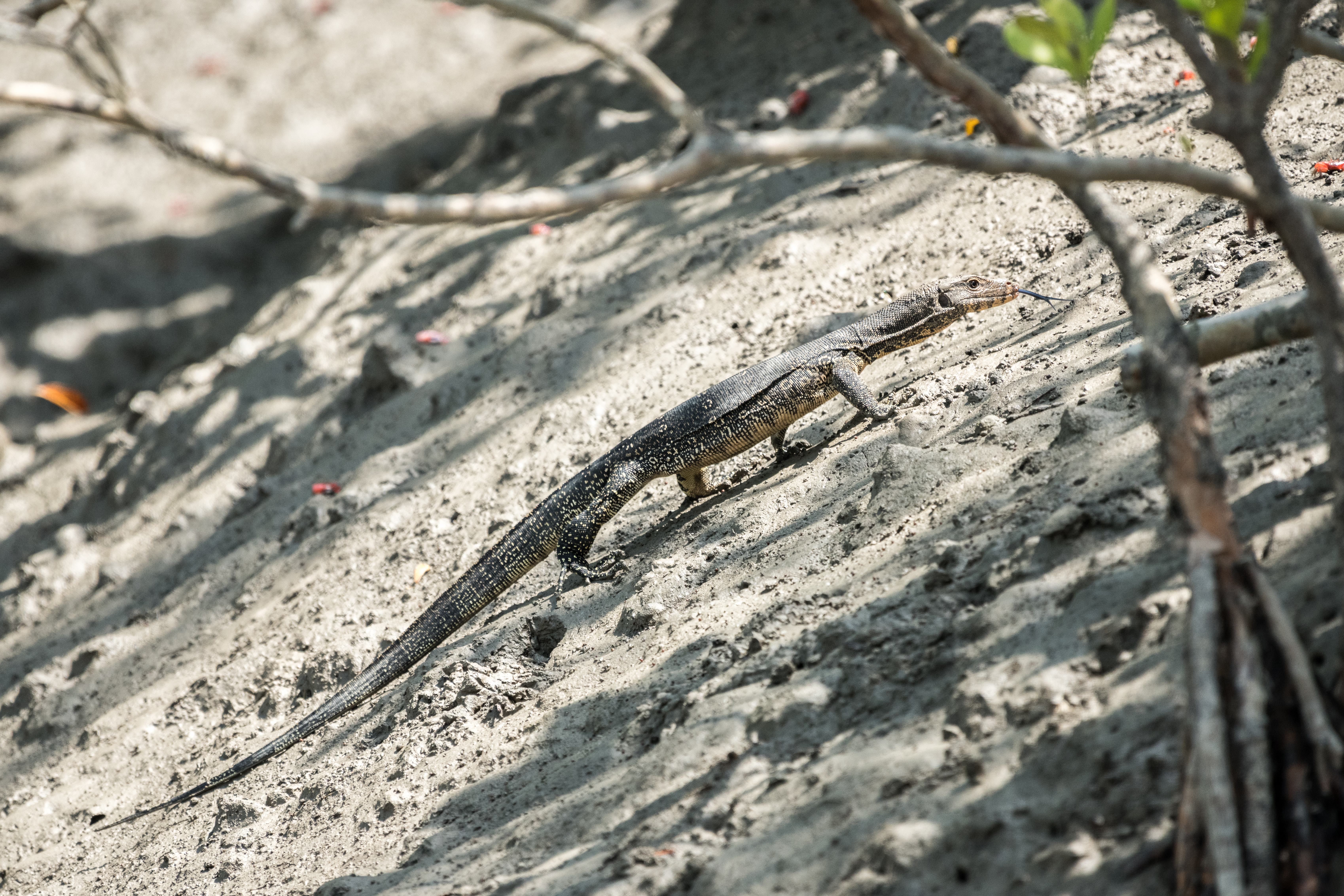 Ptáky jsme fotografovali v mangrovech Sundarbanu asi 100 km na jihovýchod od Kalkaty. Při 3D sledování se autofokus chytal bez problému proti obloze, ale u popolétajících ledňáčků zmateně přeblikával od keřů na hýbající se ptáky, a tak jsem přepl na klasické kontinuální ostření pomocí volitelného ostřícího bodu.
