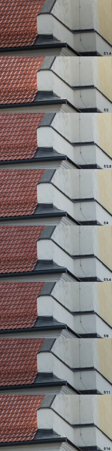 Co se týče kresby na středu, tak mezi objektivy není žádný velký rozdíl. Optické výsledky jsou na stejných clonách velmi podobné. Maximálně mi přijde, že levnější model má trošku chladnější podání barev, zatímco f/1.4 je trošku teplejší. Oba objektivy mají skokové zlepšení kresby a kontrastu vykreslení na f/2.8 a ještě na f/4, lepší světelnosti jsou solidní a dobře použitelné. Sluší se ale dodat, že modernější objektivy na nich mají ještě lepší kresbu.