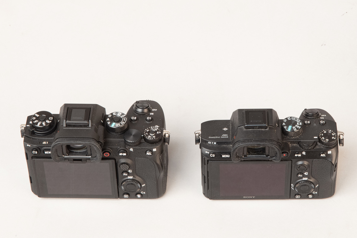 Ergonomie modelů Sony A1 a Sony A7 Mark III je na následujících obrázcích (Sony A1 je vlevo).