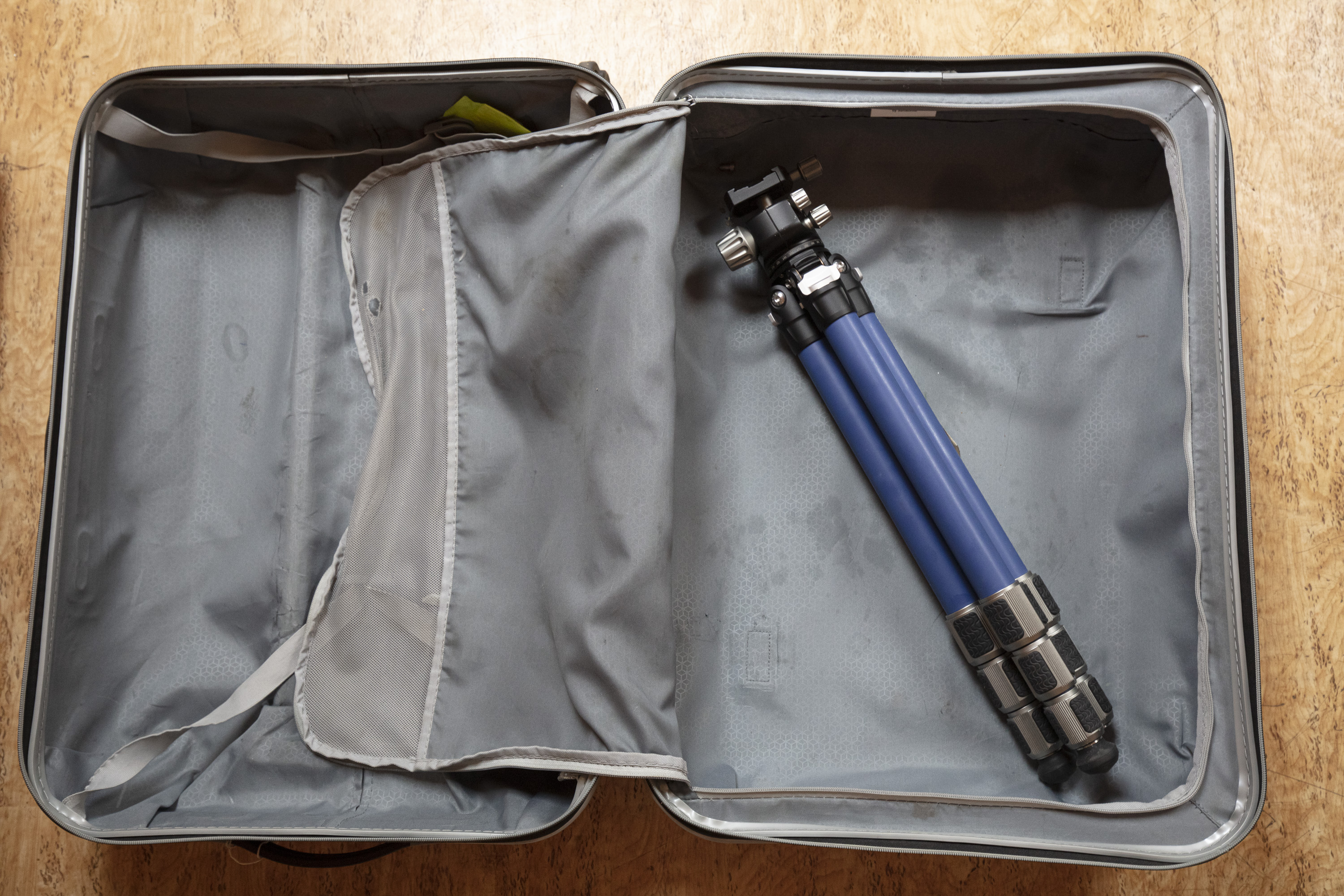 Se stativy jako spoluzavazadly do letadla mohou být potíže. Při letu do Indie jsem měl Poseidon 284C i s nasazenou hlavou ve svém středně velkém skořepinovém kufru. U větších stativů musím sundat hlavu. Leofoto Poseidon 324C má skladovací délku 58cm. Kulovou hlavu LH-40 jsem sundat nemusel. Pro cestovní stativ je skladnost důležitá.