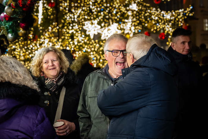 Na samotném Staromáku jsem už fotila z ruky. A jak jsem tak fotila obří svítící strom, všimla jsem si, že se mi do fotek stále více dostávají lidé a že mě vlastně i více baví fotit lidi než vánoční výzdobu, pražská zákoutí a historii. Tak jsem zahodila klasický vánoční stromek i s koulemi, rozhodla se, že se nebudu omezovat na klasický pohlednicový styl a další focení pojala reportážně.
