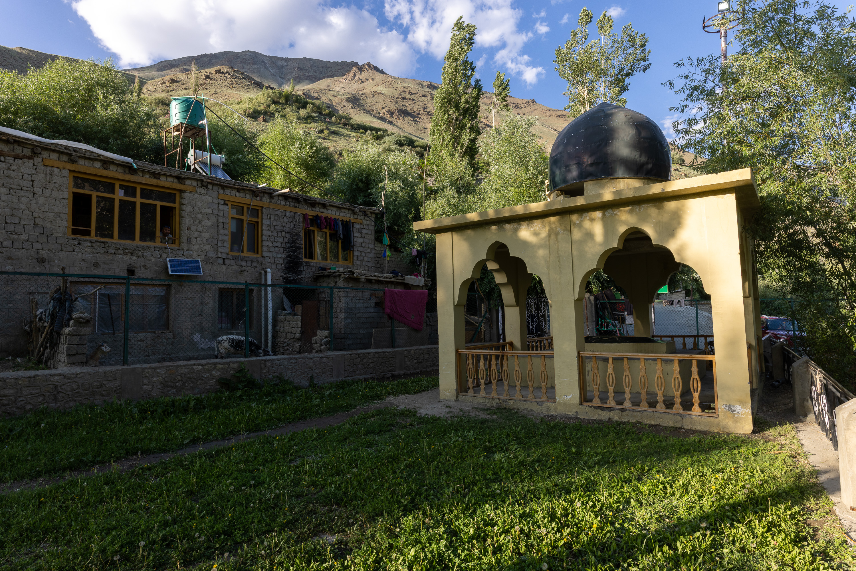 Tato část Ladaku je dnes obývána muslimy. Královna byla muslim a král buddhista. Story je stará 500 let. Původně malá hrobka se nachází nedaleko „skalního“ Buddhy. Všimli si ji politici. Nejprve úřady z Leh vybudovali honosnou hrobku. Pak ji místní muslimové zbourali a nakonec se postavila tahle betonová, která není nic moc. V domě vedle hrobky je malý penzion, kde jsme spali…