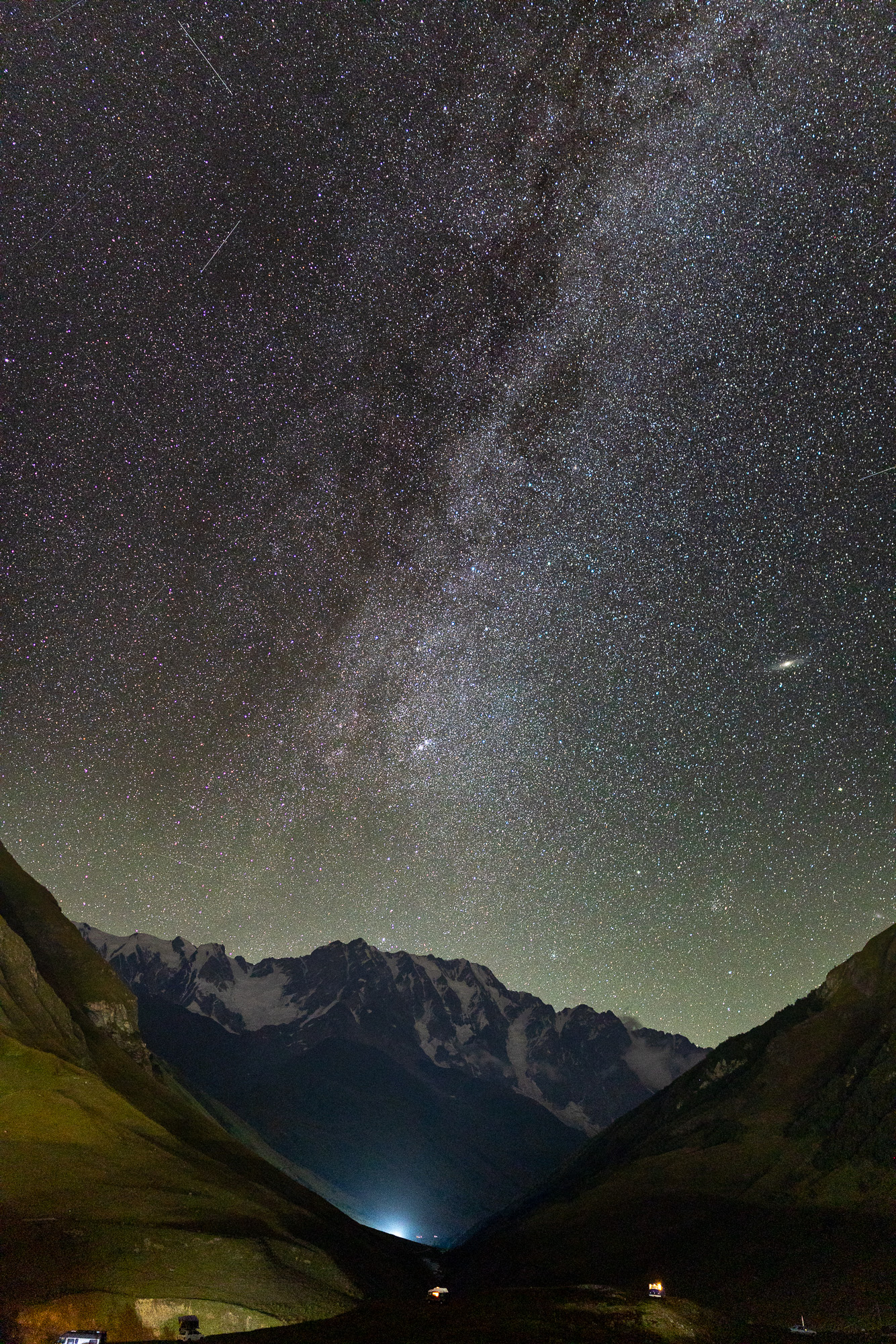 Nejvyšší hora Gruzie Šchara se severním koncem Mléčné dráhy, Gruzie