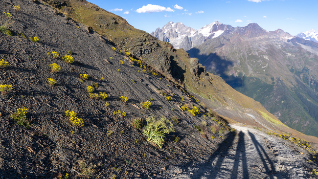 Tady jsem vrazil do ruky Canon R5 Mark II do ruky Petrovi, aby mne vyfotil před sestupem z hřebene. Už se těším na Kavkaz zase na jaře 2026, kdy sem zase vyrazíme s fotoexpedicí Fotoinstitut.cz a hřeben bude plný jarních květin.