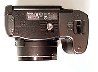 CANON. Na pravé straně jsou pod plastovým krytem jsou konektory pro externí