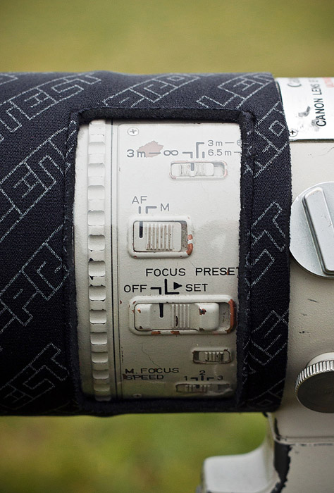 Jako každá ochrana přináší Lens-Protect i jistý stupeň nepohodlí. Že se nedostanete tak snadno na ovládací prvky na objektivu příliš nevadí, stejně přepínáte přepínače minimálně, a pokud je to opravdu nutné, lze neoprén odhrnout a přepnout. Co mi po prvním nasazení vadilo byl fakt, že během zoomování se zároveň otáčí i ostřicí kroužek (síla potřebná pro jeho otočení je totiž menší než tření mezi ním a neoprénem). Tento problém se neobjeví u levnějších objektivů bez USM, kde se kroužek otáčí dostatečně ztuha (protože je přímo propojen s ostřicím motorkem). Byl jsem totiž zvyklý zaostřit, zoomem poupravit kompozici a exponovat – to teď nejde, protože zoom rozhodí ostření. Ale nakonec to představovalo menší obtíže, než jsem čekal a snad si nepamatuji, že bych kvůli tomu pokazil fotku. A údajně lze na přání vyrobit Lens-Protect ze dvou kusů, zvlášť pro zoom a zvlášť pro ostřicí kroužek, kde k tomuto “spojenému” otáčení nedojde. Pokud bych měl vypíchnout ještě jednu drobnost, tak je to manžeta kolem bajonetu. Má tendenci se při sundávání objektivu nebo jeho ukládání do brašny smeknout a spadnout, čímž komplikuje střídání objektivů. Jinak ale funguje na jedničku, a pokud máte více těl nebo nestřídáte objektivy často, není co řešit (a vždy se dá fotit bez ní).