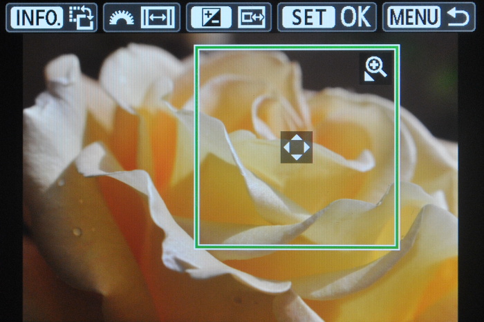Právě zadní strana přístroje ovládaná palcem doznala při miniaturizaci největších změn. Některé prvky se přemístily a zmizela čtyři tlačítka křížového voliče. Ta nahradil plastový kroužek, který sice funguje jako čtyř-směrný ovladač, ale neslouží k rychlému nastavení jako u stovkové řady. I při běžném focení jste odkázáni na přístup k nastavení přes displej tlačítkem Q. Pak teprve oceníte, že je displej 100D dotykový. Veškeré ovládání je výrazně pohodlnější než pomocí miniaturního plastového ovladače.
