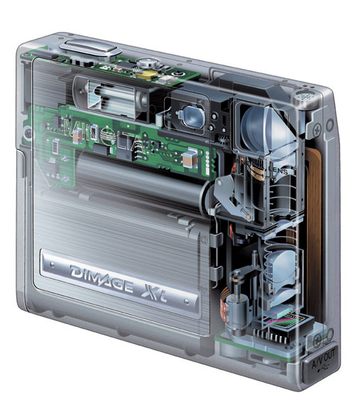 Model Minolta Dimage X známý zajímavým řešením zoomu je nahrazen novinkou Xi. Tento model má již 3 Mpx čip, dále byla ještě dále zkrácena doba náběhu po zapnutí přístroje na 1.2 s. Nyní tento fotoaparát umožňuje také záznam zvuku až po dobu 30-ti minut, což podporuje koncepci fotoaparátu-záznamníku, který člověk nosí neustále s sebou. Dále byla rozšířena oblast nastavování citlivosti, kterou lze v manuálním módu volit od 50 ISO do 400 ISO. Výrobce uvádí, že se jedná o nejmenší, nejlehčí a nejužší třímegový přístroj na trhu. Na trh přijde v listopadu 2002.
