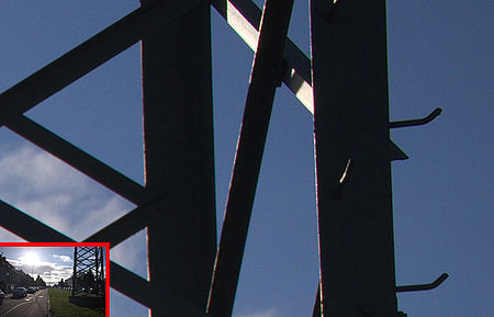 Na kontrastních hranách v rozích obrazu při plné světelnosti viditelné. Po zaclonění (zde F8) jen v náznaku: