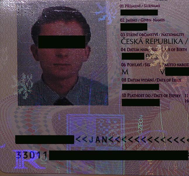 průhledných fólií a jsou nalaminovány na občanských průkazech, pasech,