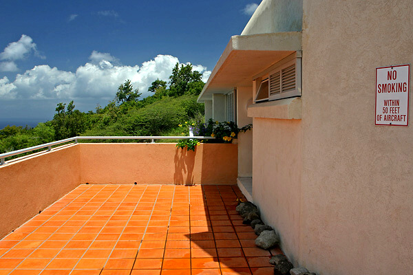 Po krátké prohlídce, prozatím venkovní, jsme si začali pohrávat s myšlenkou, kolik by asi pilot chtěl za let do blízkosti sopky. Netrvalo dlouho a po domluvení finanční hranice, za kterou nehodláme jít, jsme vyrazili vyjednávat. Závěr? Bylo vidět, že by to bylo pouze proti vůli nadřízených a že s tím měl již někdo problémy. O této možnosti jsem věděl z internetu, v roce 1999 se ve zničeném a opuštěném Plymouthu nechal vysadit jistý americký „fotograf“, který však naprosto nevyužil naskytnuté příležitosti. Jím pořízené fotky jsou nezajímavé. Já jsem se musel spokojit s možností vydrápat se na kopec a fotografovat zdevastované město 300mm s extenderem 1,5×.