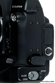 Zbytek těla kromě některých prvků jako rolery už Fuji upravilo podle svých představ a nutno říct, že velmi úspěšně. Jak jsem už řekl, je výrazným znakem samotný grip. Ten umožňuje i velmi snadné držení a používání ve vertikální poloze, díky integrované spoušti pro toto použití. Spoušť je navíc opatřena i zámkem aby nedošlo k náhodnému použití. Osobně jsem tuto spoušť přivítal při práci v ateliéru.