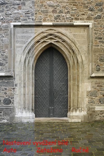 Na ukázce č.17 je opět fotografie v plném rozlišení, tentokrát ale složená z ukázek funkce vyvážení bílé při denním světle. Při fotografování bylo úplně zataženo a velmi lehce mrholilo. Zleva doprava je nastavení vyvážení bílé automaticky, potom na předvolbu zataženo a nakonec je snímek pořízený po ručním změření úrovně bílé. Na složenině je viditelné, že automatika měla tendenci posunout snímek do chladnějších odstínů, kdežto další dvě volby vycházely v podstatně teplejším tónu. Výsledek se nijak dramaticky neodlišuje od jiných fotoaparátů této kategorie a lze jej proto považovat za dobrý. Na další ukázce č.18 (opět možno stáhnout v nejvyšší kvalitě formátu JPEG) je praktická ukázka toho, že Canon EOS 5D lze bez obav používat i při nastavení vysokých hodnot citlivosti ISO. Snímek byl pořízen za denního světla při citlivosti ISO 1600 (bez aktivované redukce šumu) a myslím, že po stránce úrovně šumu jej lze považovat za vynikající. Další dvě fotografie v plném rozlišení si můžete prohlédnout na ukázkách č.19 a 20. Na č.20 byl navíc aktivován přímo v aparátu černobílý režim v základním nastavení.