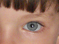 Porovnání expozice bez blesku a s ním. S ním je snímek „líbivější“. Automatika zvolila ISO 320 resp.ISO 100. Protože došlo k pohybu očních víček, je první snímek částečně při 1/25s rozmazaný (ale límeček nikoliv). U druhého k rozmazání prakticky nedošlo (1/60s, ale spíše to ovlivňuje podstatně kratší délka záblesku).