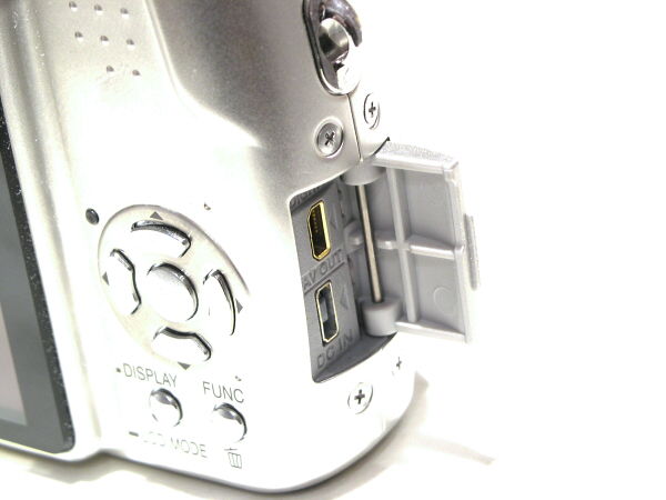 Plastový stativový závit je umístěný zcela v kraji dolní stěny, tedy mimo osu objektivu. Zadní straně dominuje 2,5" LCD displej. Další prvky jsou vpravo od něj (celkem sedm tlačítek). Tlačítko DISPLAY pro určení množství zobrazených informací, tlačítko pro mazání snímků a sdružené vícepolohové tlačítko s volbou bracketingu, režimu rychlého prohlížení, režimu blesku a samospouště. Uprostřed nich je tlačítko menu/set. Škoda jen, že tlačítko mazání již neumožňuje volbu sekvenčního focení.