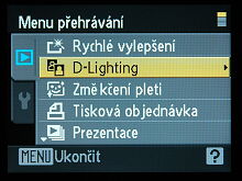 Prohlížení snímků je rychlé. Z možných úprav najdeme D-Lighting