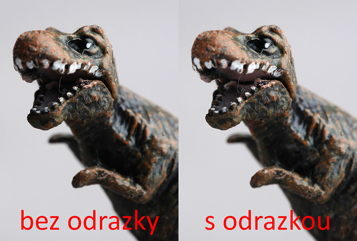 aké u zátiší se odrazka používá. Pokud se jedná o nalezené zátiší (PhotoHint 2: Fotografické zátiší), nebo zátiší v exteriéru, pak se opět snažíte dostat světlo tam kde přirozeně není. Ovšem i ve studiovém zátiší můžete odrazku využít. Kromě banálního nedostatku studiových světel třeba pro změnu barvy světla barevnou odrazkou. Speciálním druhem odrazky používaným pro studiové fotografování předmětů je pak obyčejné zrcátko. Malé zrcátko umožňuje velmi přesně směřovat odraz na konkrétní místo, aniž by osvětlilo okolí. Odraz je sice nevzhledný flek, ale díky tomu, že se na scéně nic nepohybuje a fotoaparát je na stativu, můžete fotografovat stálými světly na dlouhé časy a prasátko mírným pohybem rozmazat. Toto se hodí především pro situace, kdy chcete světelně zvýraznit jedno místo fotografie.