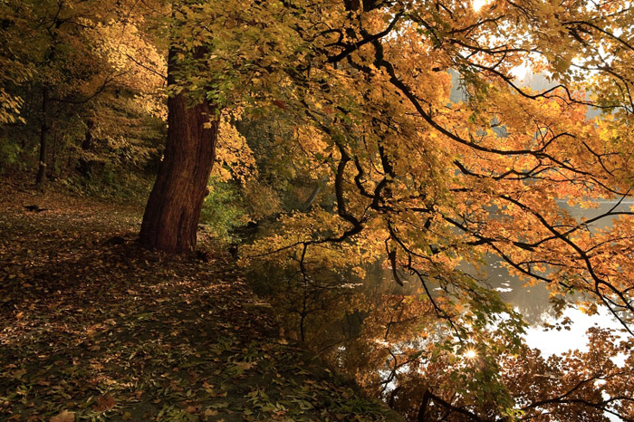 Začnu úplně klasickým krajinářským motivem kombinujícím osvědčenou krajinářskou trojkombinaci: zajímavý strom, voda a její břeh. Příjemná barevná harmoničnost podpořená zaručeně účinným zlatým řezem je jistotou plnohodnotného účinku na diváka.