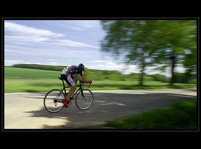 to sk: bylo to do cíle sice lehce z kopce ale na větru. Sám jsem v tomhle mistě jel tak kolem 50km/h.A jel jsem spiš rychlejc než fotografovaný. Jinak čas byl 1/60.Pocitově mi ta fotky přišla, jako povedená, že vyjadřuje časovku. Ale nikomu to nechci nutit.