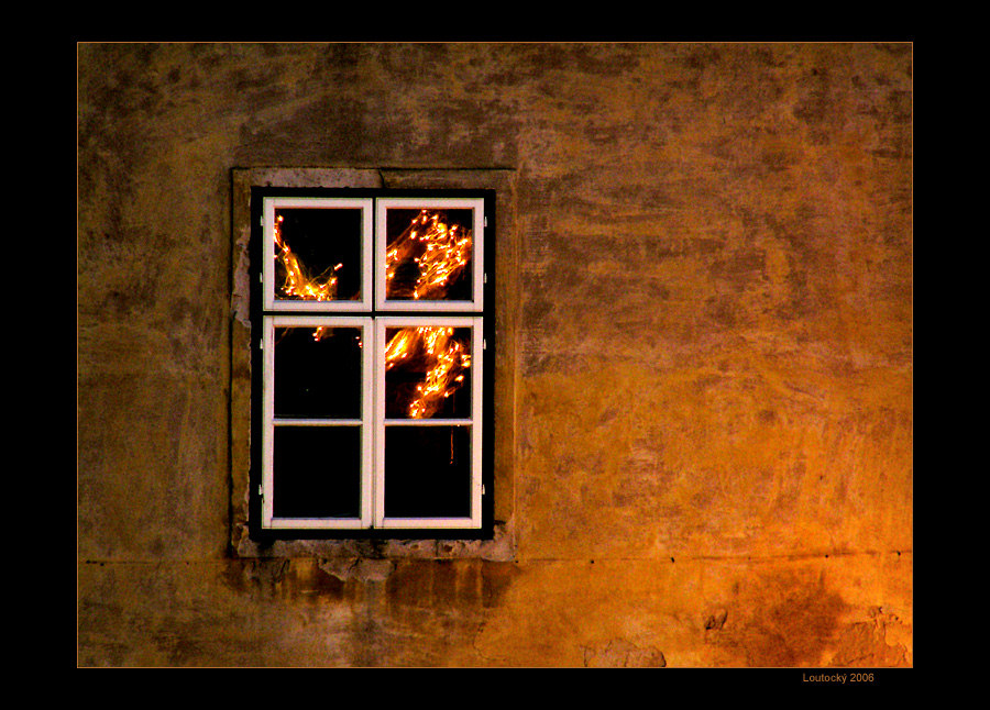 Je to foceno o Vánocích na Šternberksém hradě. Odraz v okně je osvětlení hradeb. Použit stativ.