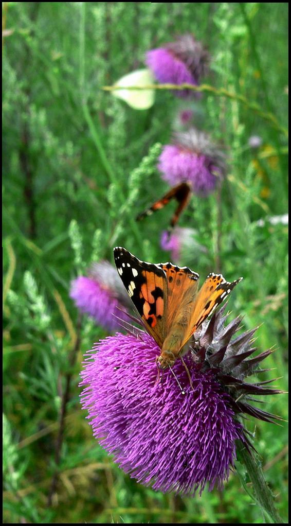 Tři motýli v řadě při svčině.Možná to chtělo větší hloubku,ale Panasonic má nevhodně přepínač a to se nedá rychle zvládnout.